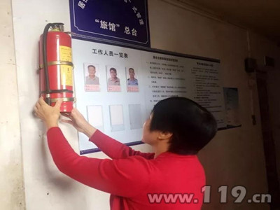 在三門縣海游街道民豐路一家出租房看到,門口貼著出租房星級評定表、二維碼等,墻上則貼著消防安全常識及流管員、網(wǎng)格員、房東等信息,屋內(nèi)消防器材配備齊全。其中,“旅館”前臺尤為顯眼,房東正低頭記錄信息。